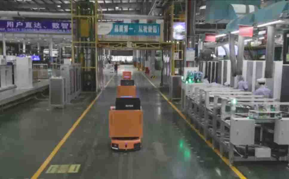 为车载冰箱物流配送打造的智能解决方案,,包含产中物流通过潜伏举升AMR搬运至线边,,产后成品物流智能仓储,,流程包含产中物流智能齐套入库,,,线边安灯叫料AMR智能配送至线边,,,成品入库、、、出库,,,,通过无人堆高车机器人,,智能仓储管理替代人工作业管理,,实现更高存储、、、更高效率、、、更具柔性化的解决方案。。。。